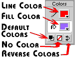 - Fill Color - The color of fills, paint bucket and paintbrush. Click