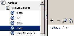 your actions panel. Click actions=> movie control=> stop to add a stop