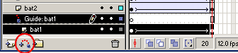 13. Click in frame 20 of the guide bat1 layer. Use the pencil set to