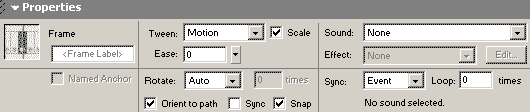 14. Click on the bats1 layer, frame1. Set the frame properties