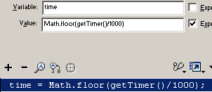 In your value field, copy the statement getTimer()/1000 by highlighting,