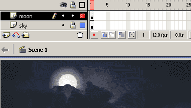 6. Insert a layer above the moon layer and call it strikes. Drag a copy