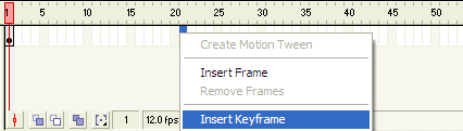 9) Now you are ready to insert the tween. To do this select frame one right click and choose Insert Motion Tween. 10) Now you will have a zooming shape and/or text.
