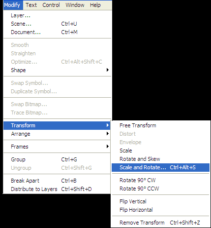 down to Transform and over to Scale and Rotate. 8) In the new dialog box which appears choose scale and key 20. In the rotate leave it at zero, and select ok.
