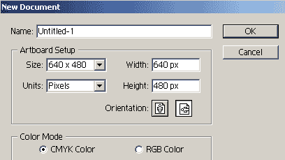 1. Open a new canvas. Set it to artboard 640 X 480, unites pixels. CMYK.